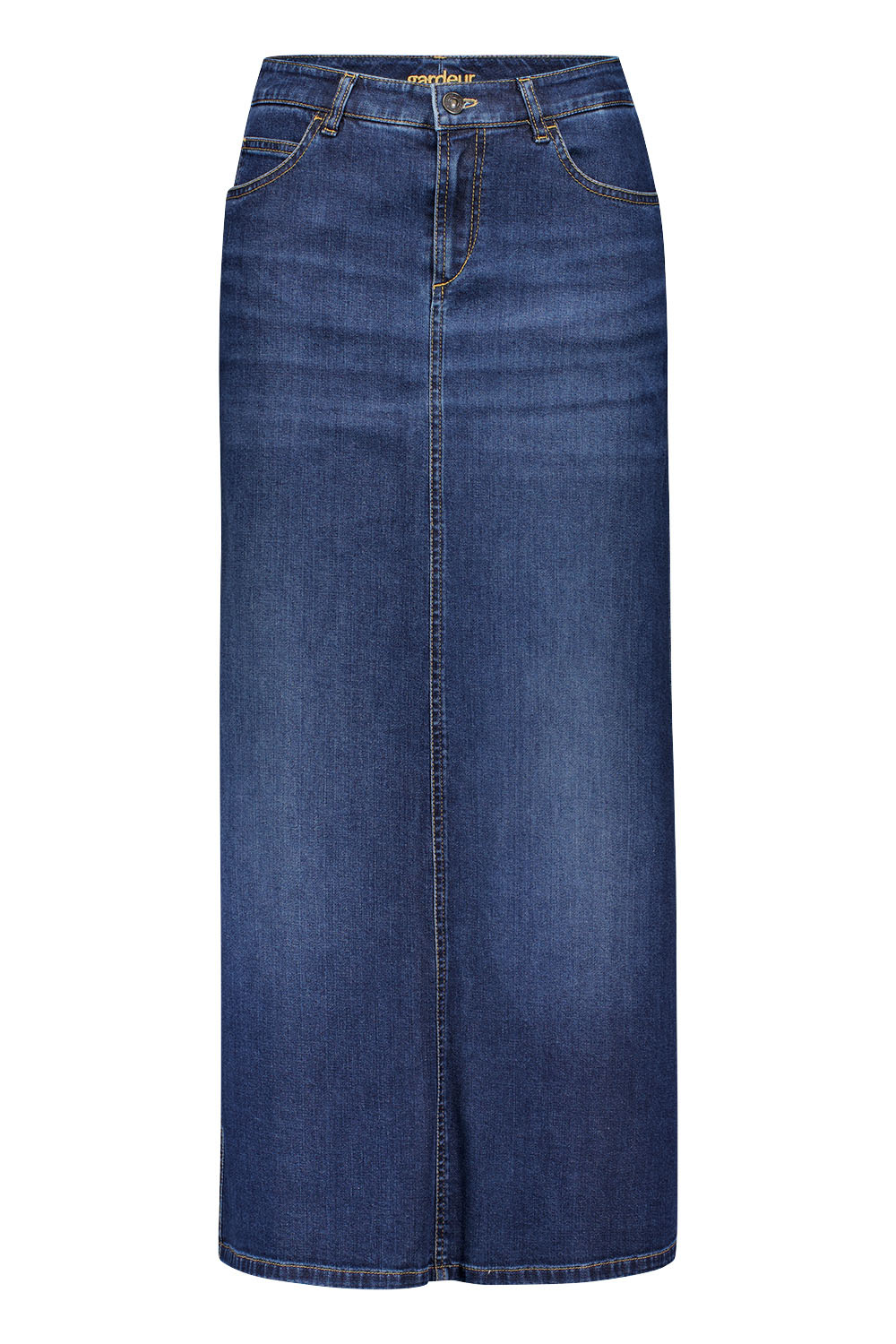 Geef je stijl een boost met de lange jeansrok met een split aan de achterkant! Investeer in de uitzonderlijke kwaliteit van Gardeur, waar je jarenlang plezier van zult hebben en waarmee je elke nieuwe dag vol zelfvertrouwen tegemoet kunt treden.
