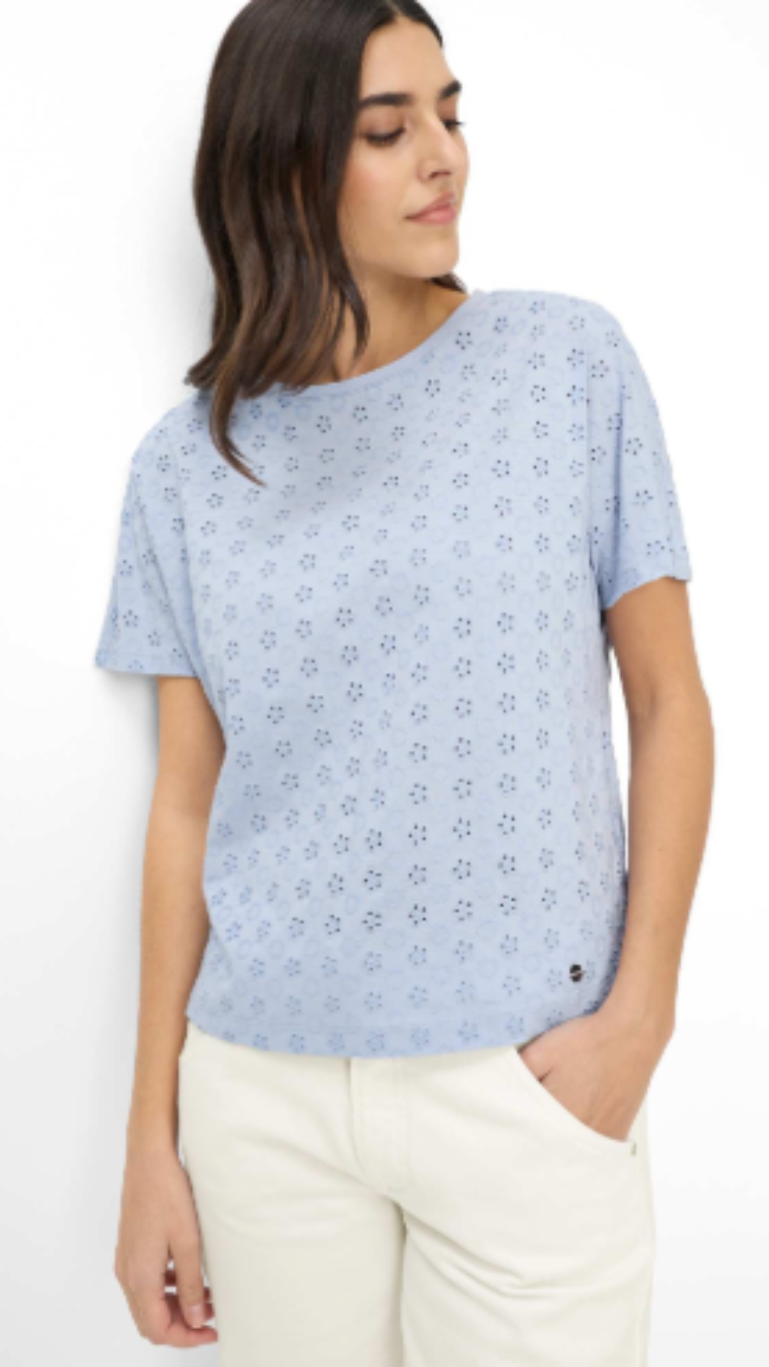 T-shirt met aangeknipte mouwen in jersey-broderie.
