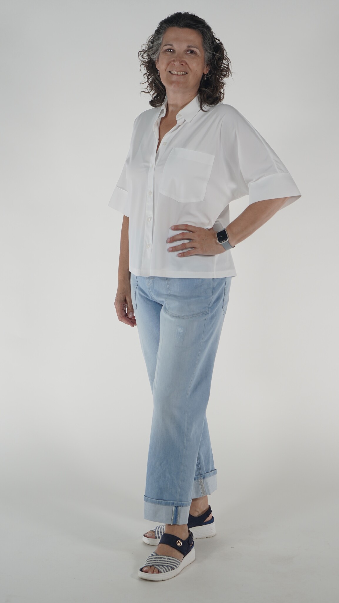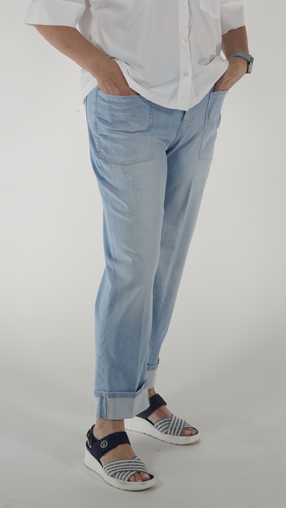 Zomerse Used-jeans met opgestikte zakken en 7/8 lengte. Limited edition.