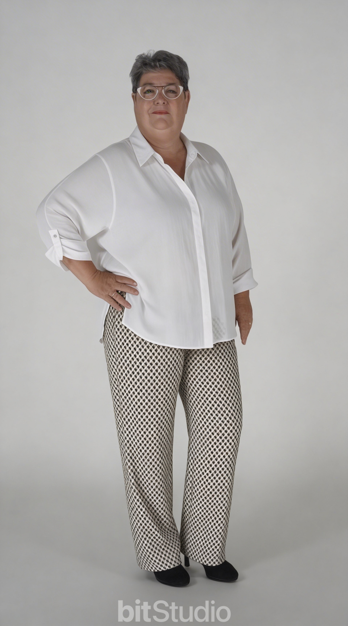 Broek met fijne print. Tailleband met elastiek. 7/8 lengte en rechte pijpen.
