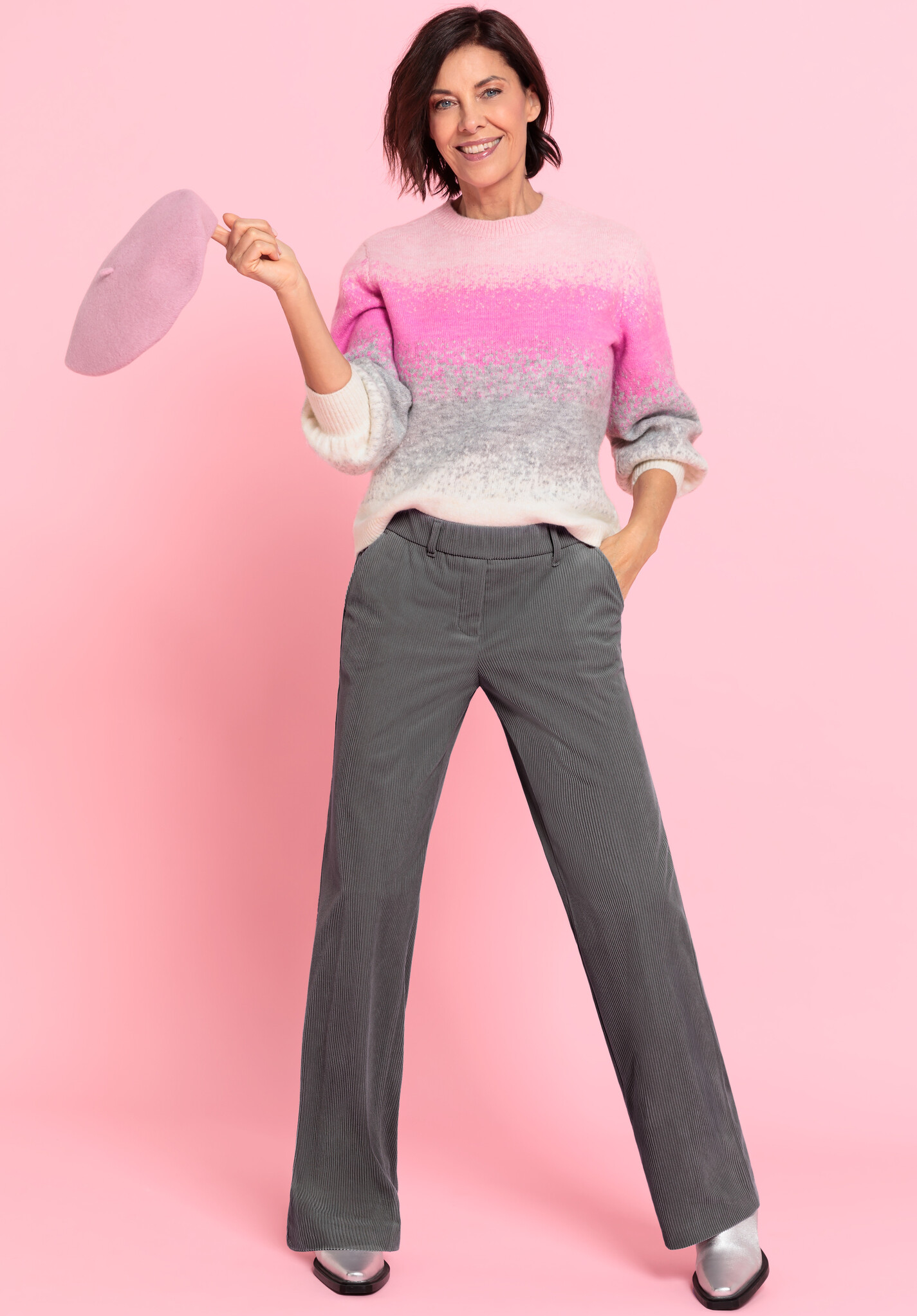 Grijs-roze trui met ronde hals, een comfortabele en stijlvolle keuze voor elke gelegenheid. Deze trui is perfect voor een casual dagje uit of een avondje stappen met vrienden.
