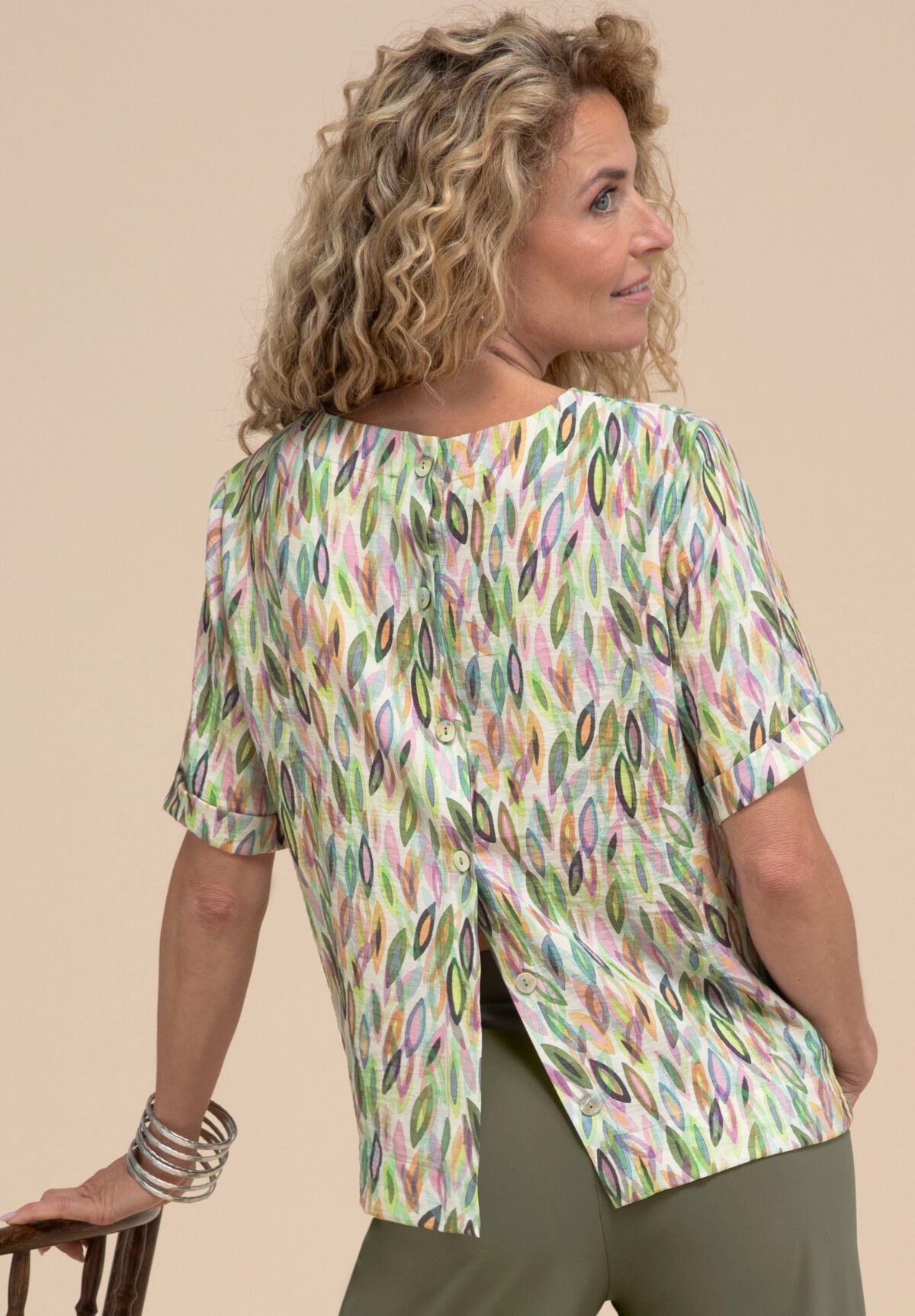 Zomers blouse met kort mouwen.