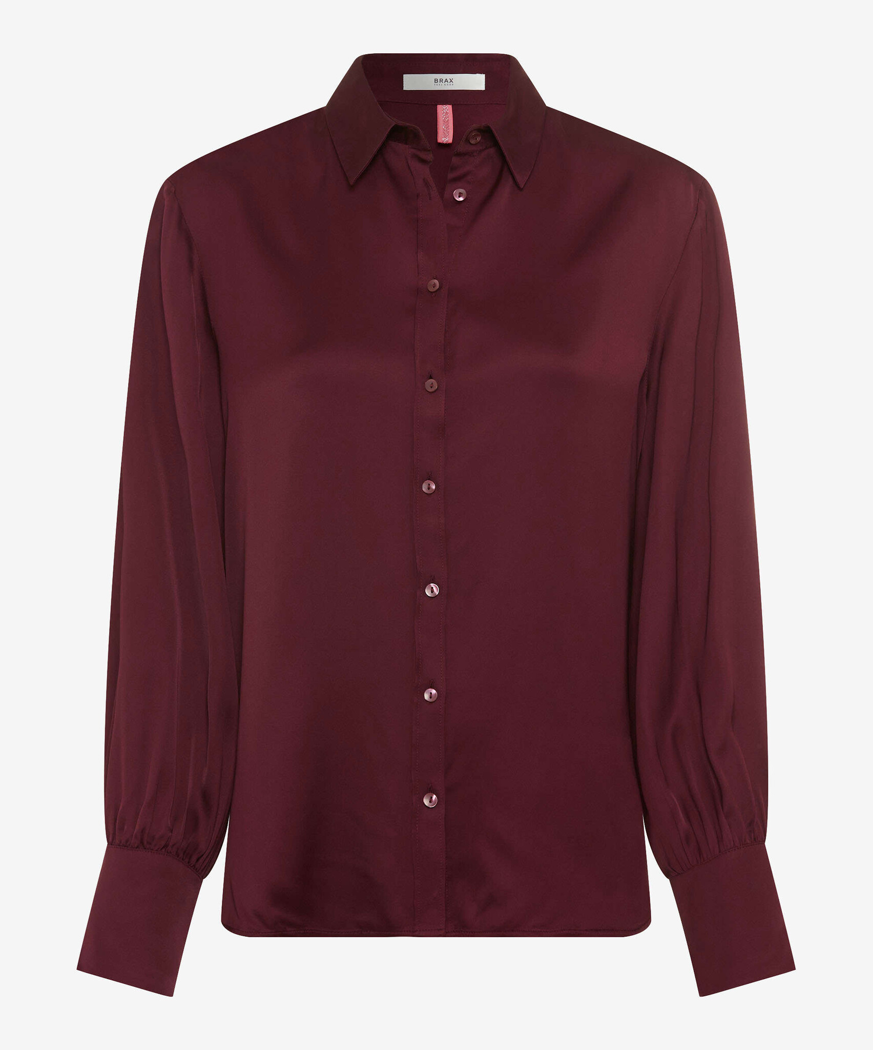 Bordeaux blouse met lange mouwen in 100% viscose satijn.