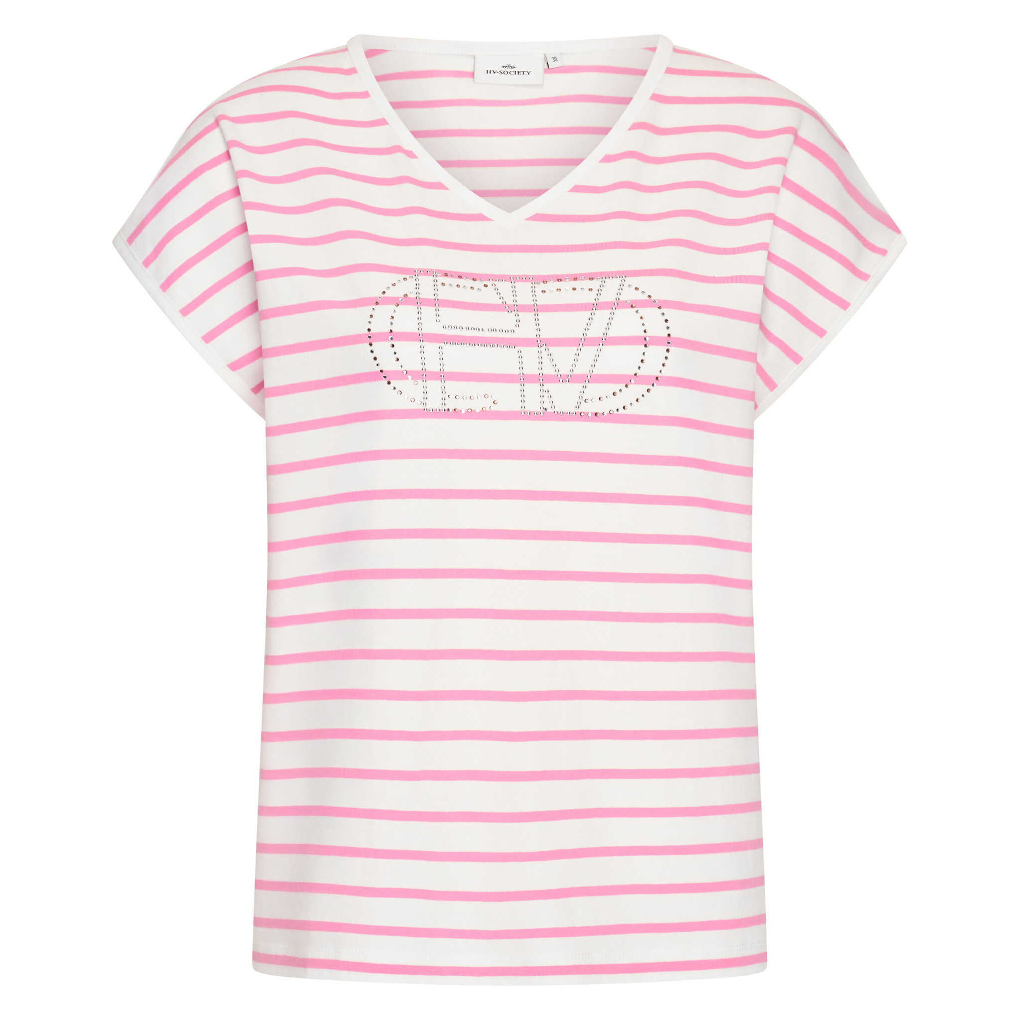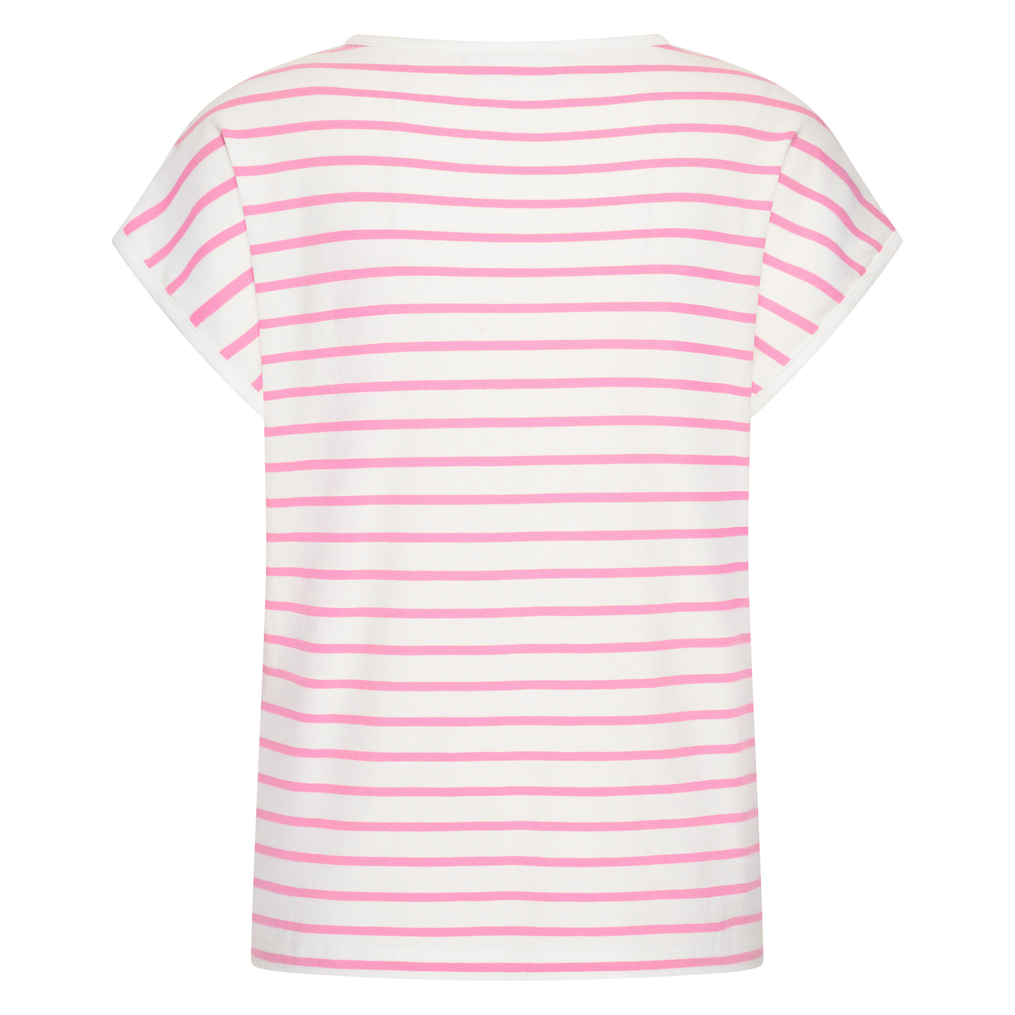 Strepen T-shirt met aangeknipte mouwen en applicatie met steentjes op de voorkant.