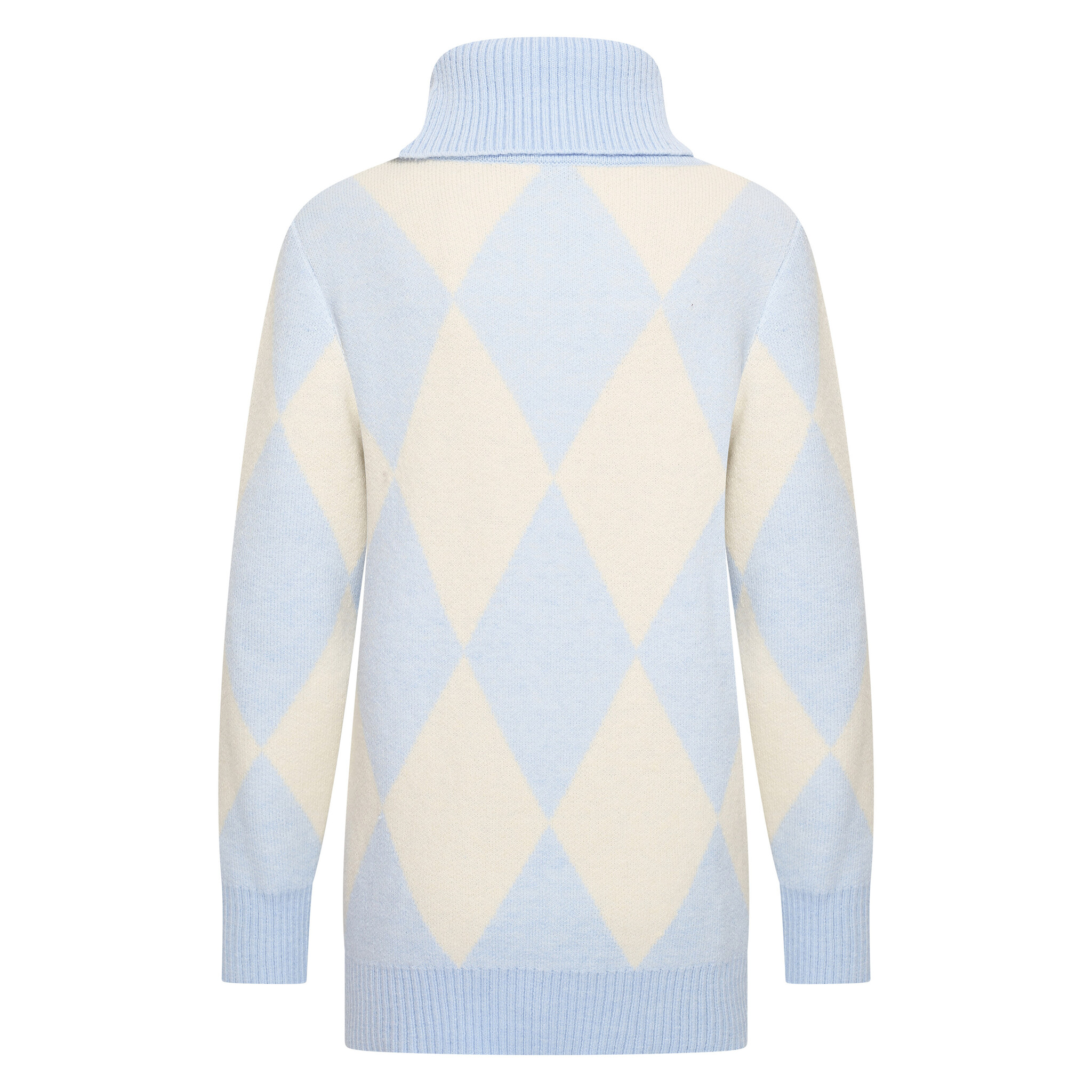 Warme wintertrui met lange mouwen en grote losse coltrui voor de perfecte winterlook. De jacquard ruitpatroon geeft de trui een tijdloze en klassieke uitstraling die nooit uit de mode zal raken.