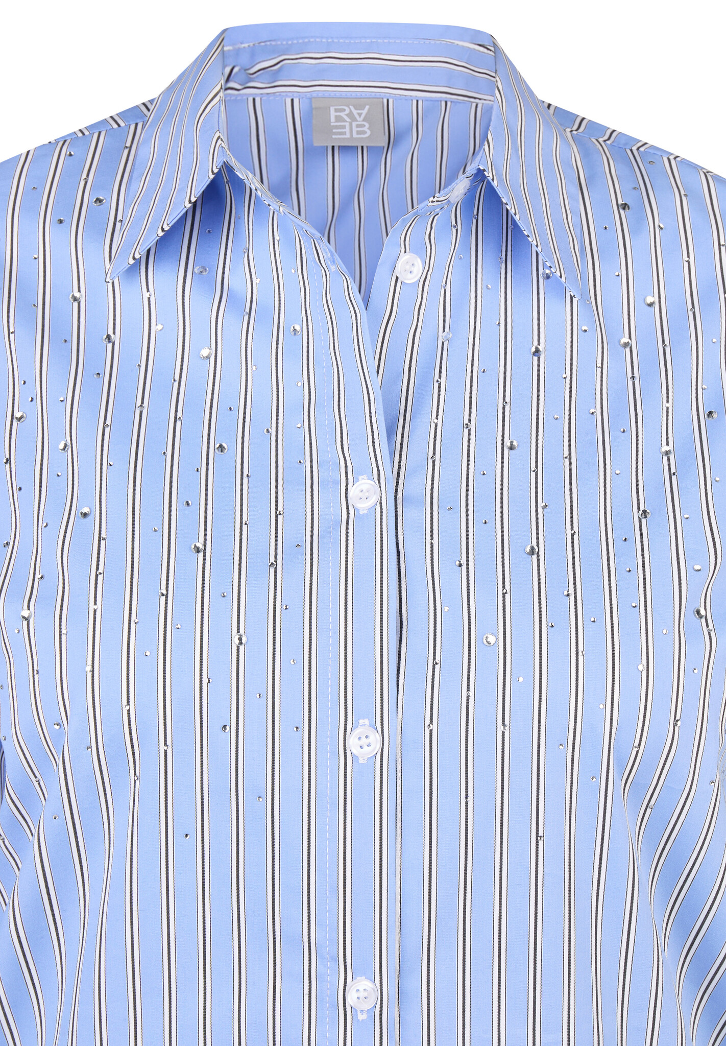 Klassieke hemdsblouse met een twist. Strepen stof bestrooid met zilveren pareltjes, wat geeft het een elegante en tijdloze uitstraling.