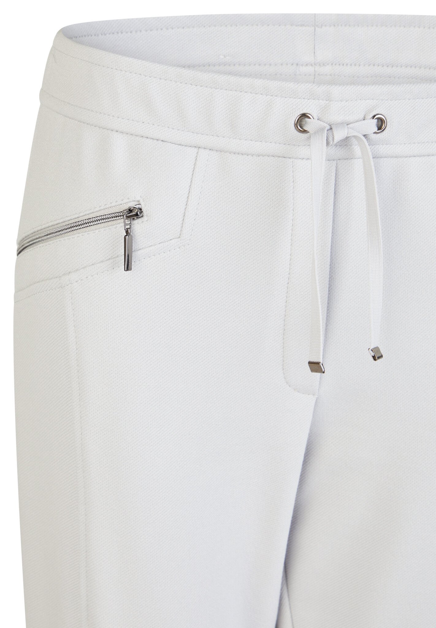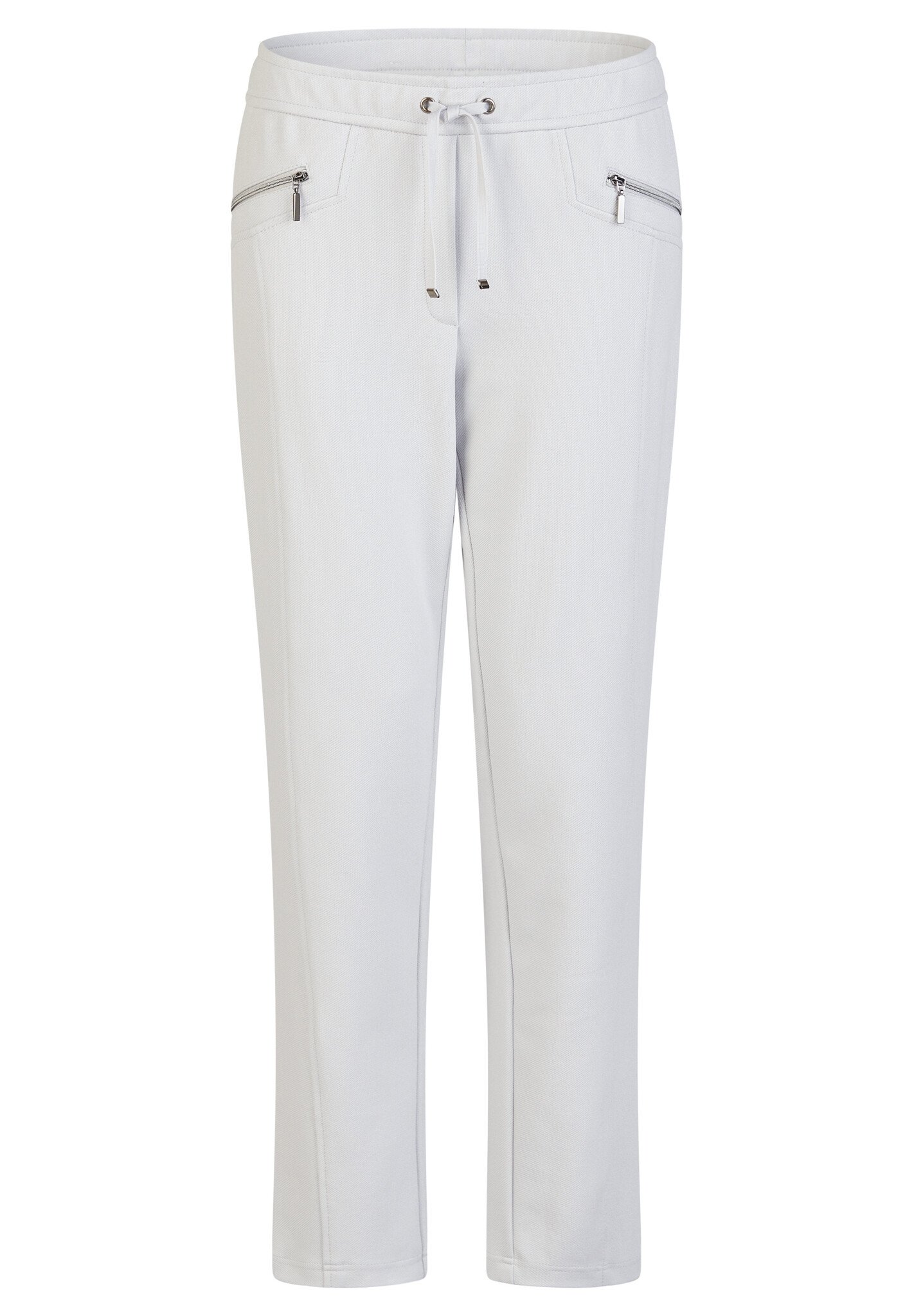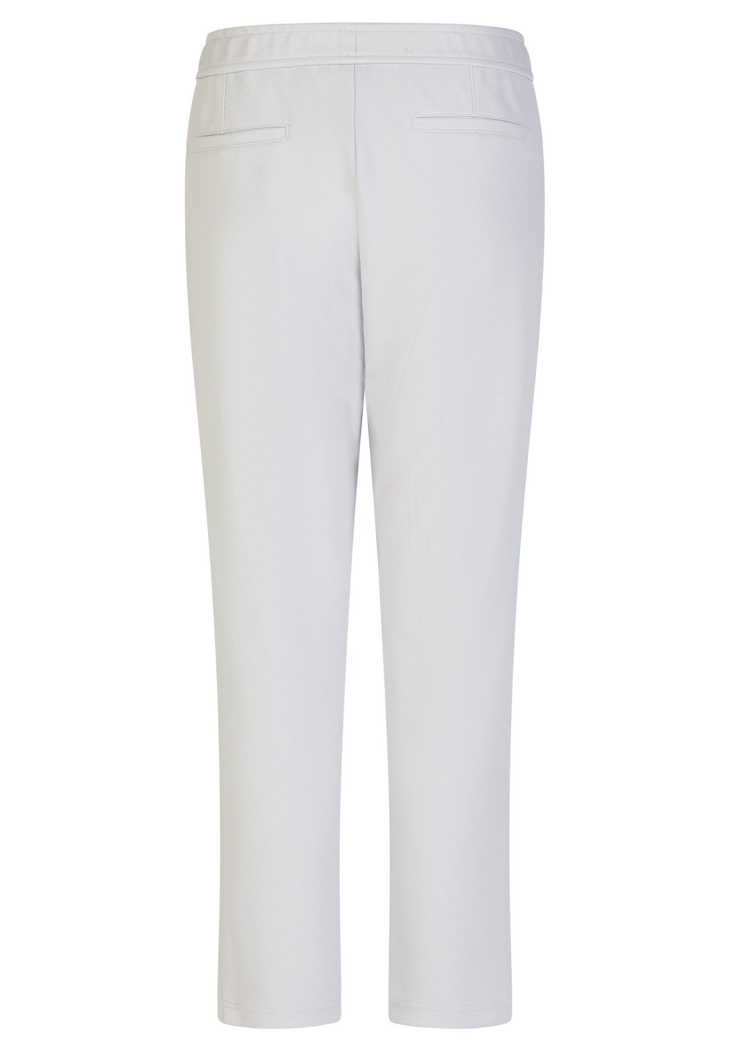 Licht grijze comfortabele broek met elastiek in de taille. Standaard pijpbreedte.