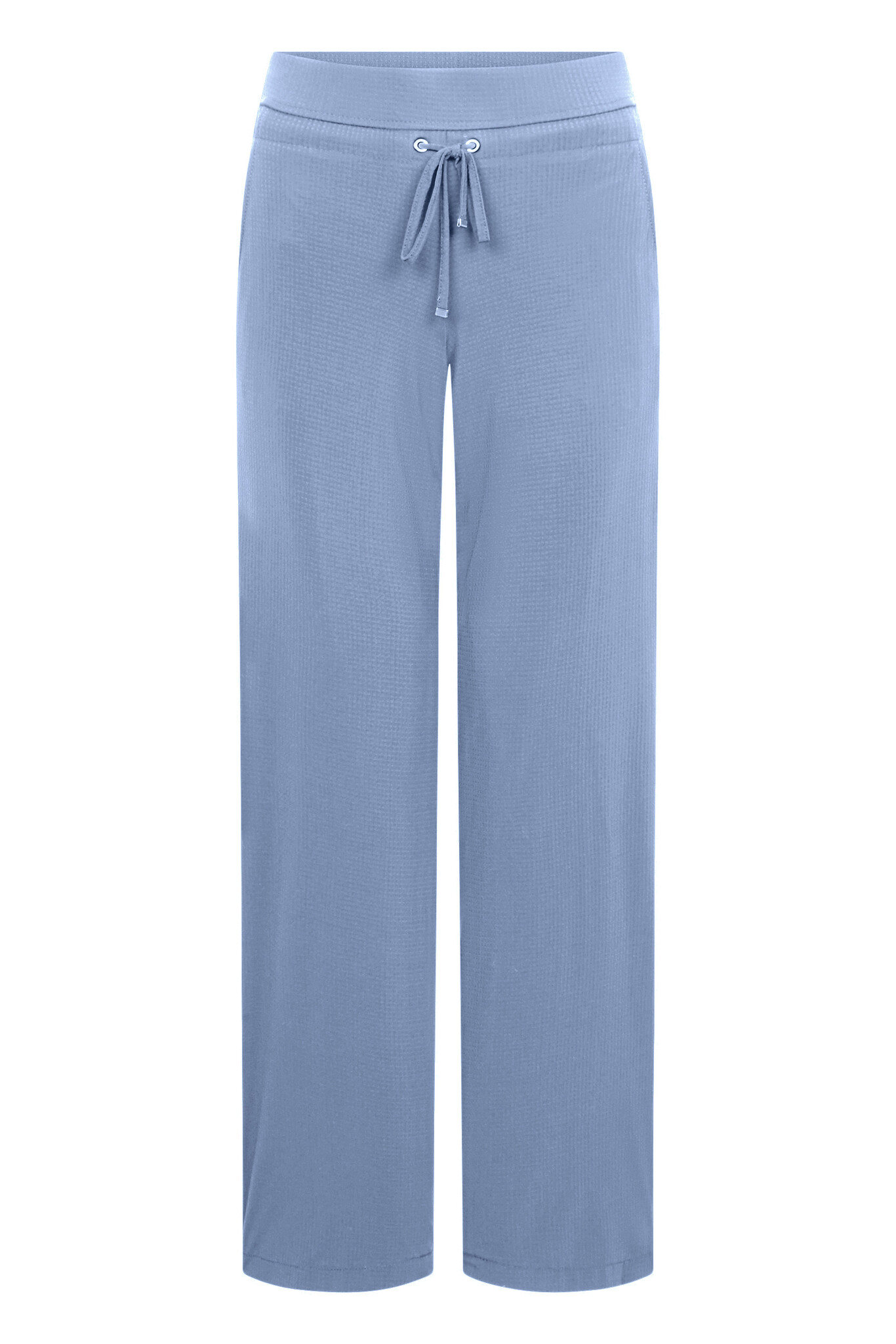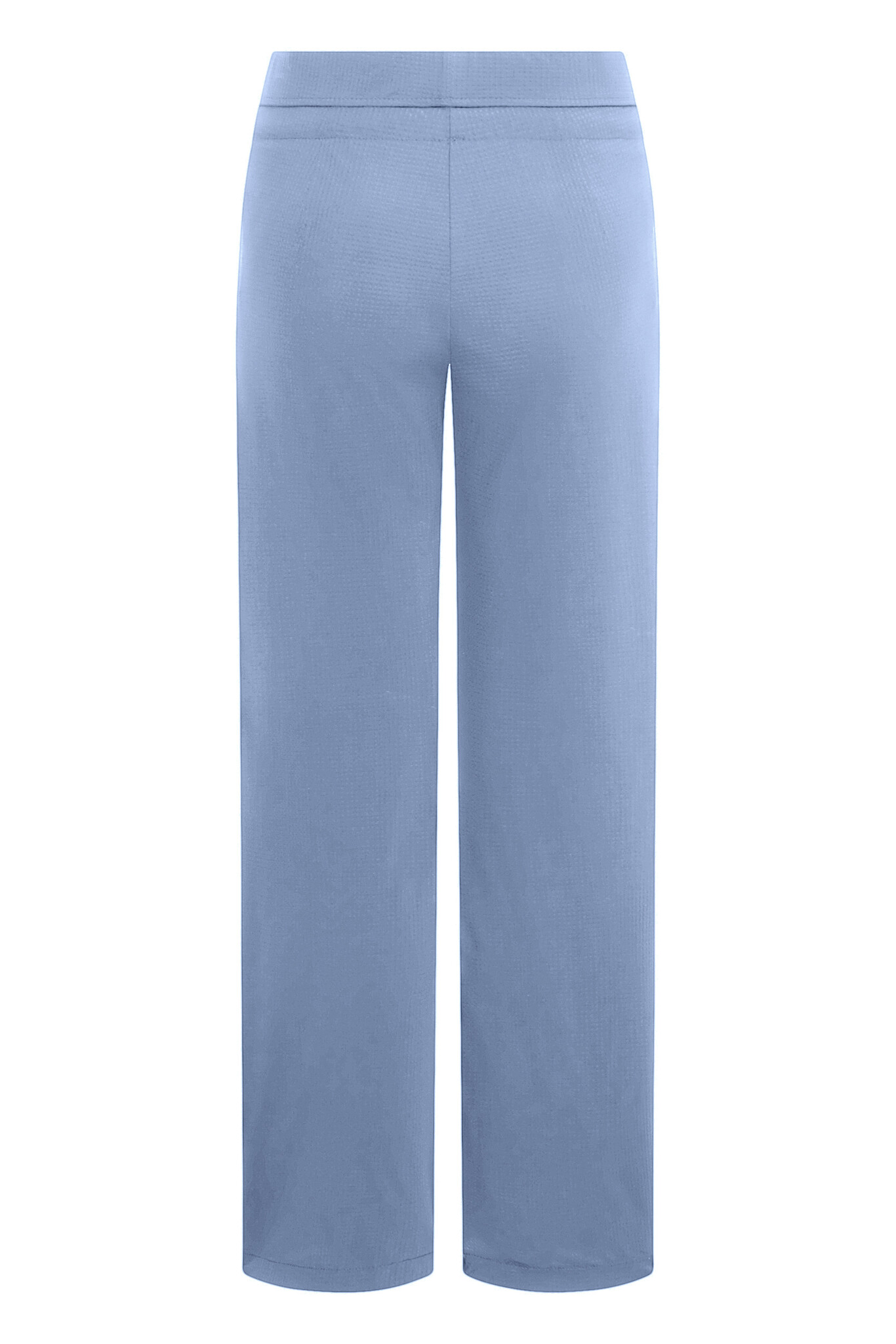 Broek met elastiek in taille in zomerse Travel kwaliteit met brede losvallende pijpen.