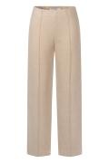 Broek met elastiek in taille voor een comfortabele pasvorm met vrouwelijke tailleaccentuering, waardoor je taille nog meer naar voren komt. De rechte pijpen geven een moderne en stijlvolle uitstraling. Het relaxed fit bij de heupen zorgt ervoor dat je je vrij kunt bewegen. En omdat het zonder zakken is, kun je je focus op de essentie - jouw stijl!