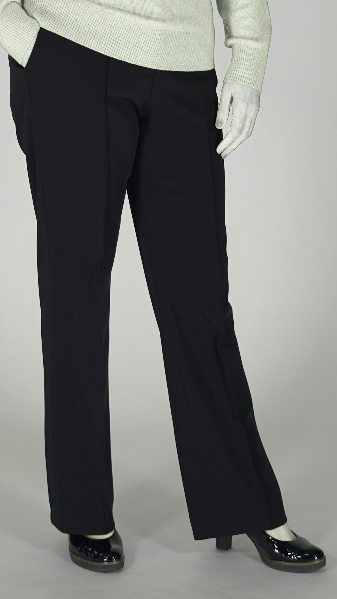 Geef uw dagelijkse look een boost met onze zwarte broek met elastische achterkant en ritssluiting met knoopsluiting aan de voorkant. De zorgvuldig vervaardigde plooi aan de voorkant zorgt elke keer weer voor een perfecte pasvorm.