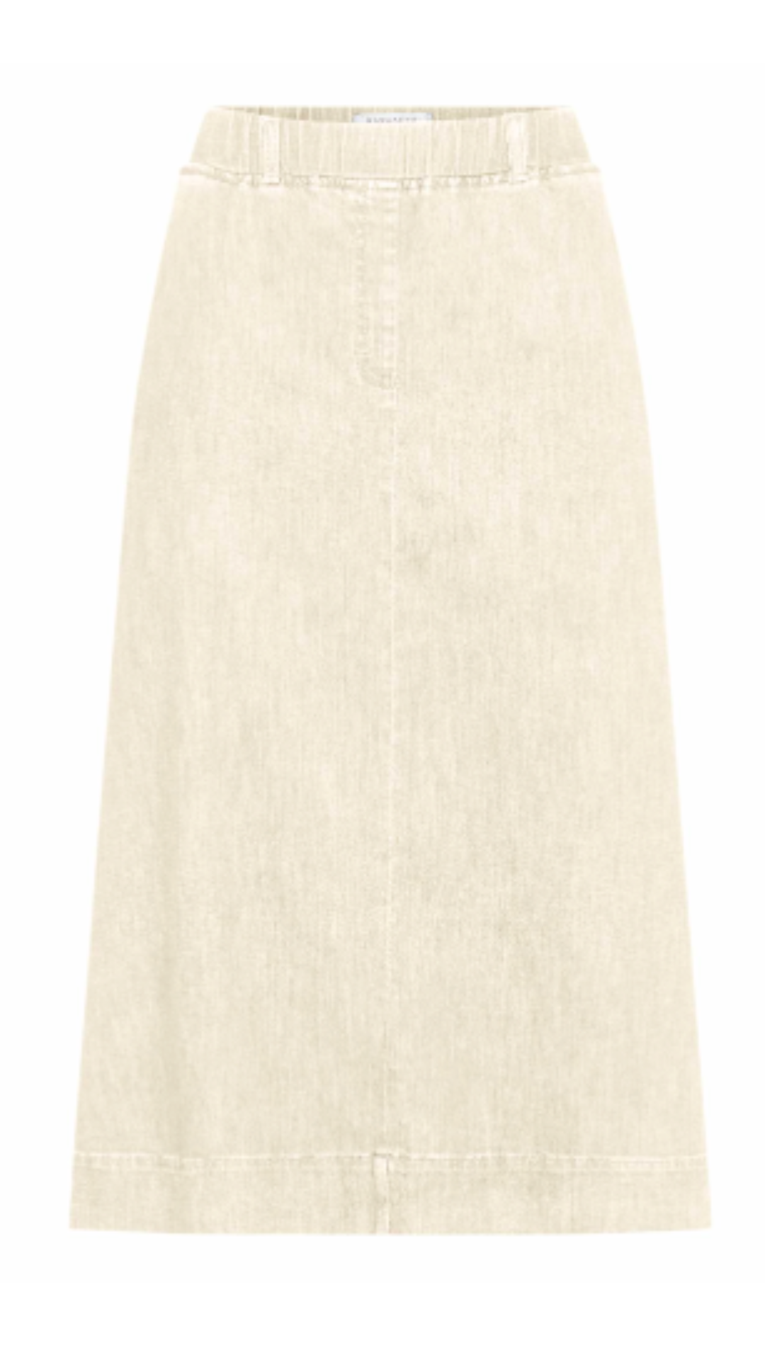 Jeansrok in Italian denim met elastiek in de taille en schuine steekzakken in zijnaad.