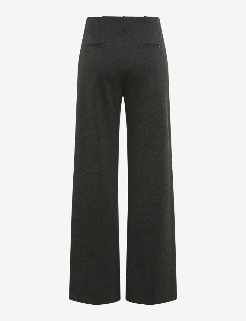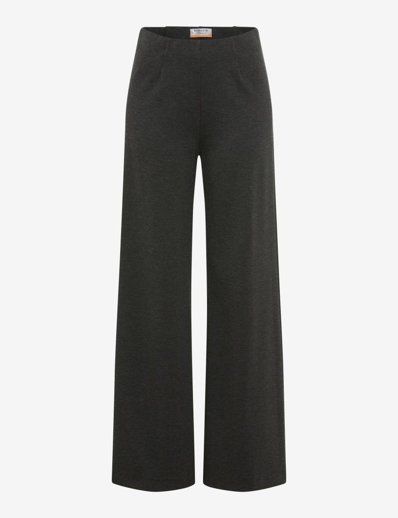 Donker grijze broek met brede pijpen, taille afgewerkt met elastiek, uitgewerkt in stevige winterjersey.