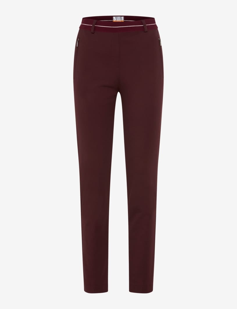 De super slim fit damesbroek in kleur amarone met hoge taille benadrukt uw benen dankzij de superslanke pasvorm. Eenvoudig aangevuld met een nep-sluiting - gewoon aantrekken en er goed uitzien. De ritszakken geven de broek een sportieve touch.