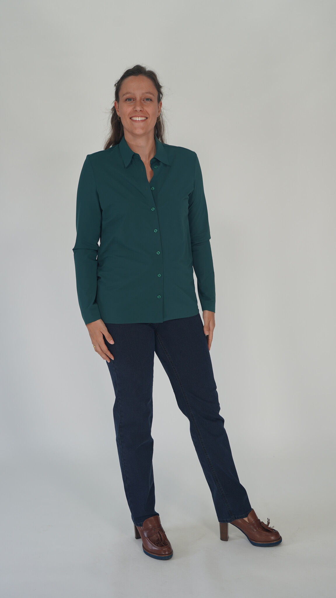 Donker groene basis blouse met lange mouwen.
